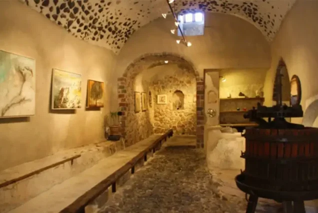 - Enjoy the tasting of 5 wines among contemporary art and sculptures in a traditional place handcrafted with stones created to accommodate the old distillery and the old winery under the perfect conditions for wine production.