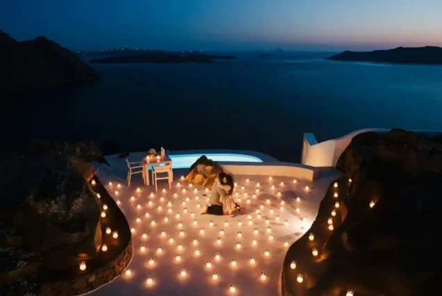 A Santorini Love Affair: Crafting Your Forever Moment In the embrace of Santorini’s timeless beauty, let your love story reach new heights with a marriage proposal as enchanting as the island itself. Picture this: a backdrop of azure waters, whitewashed buildings clinging to the cliffs, and a sky painted with the hues of a Santorini sunset. Here, amid the romantic allure of this Aegean paradise, we can create for you a proposal that will be etched in your hearts forever.
